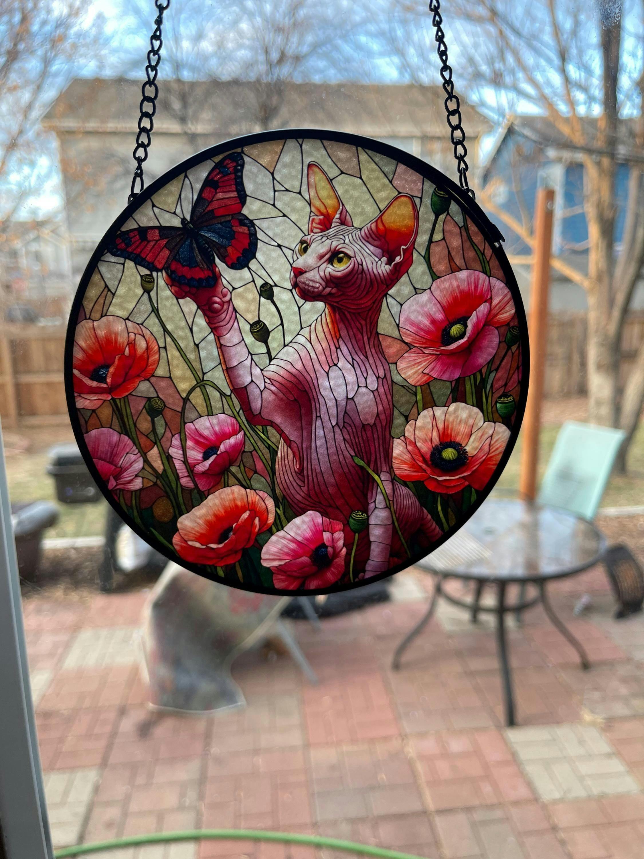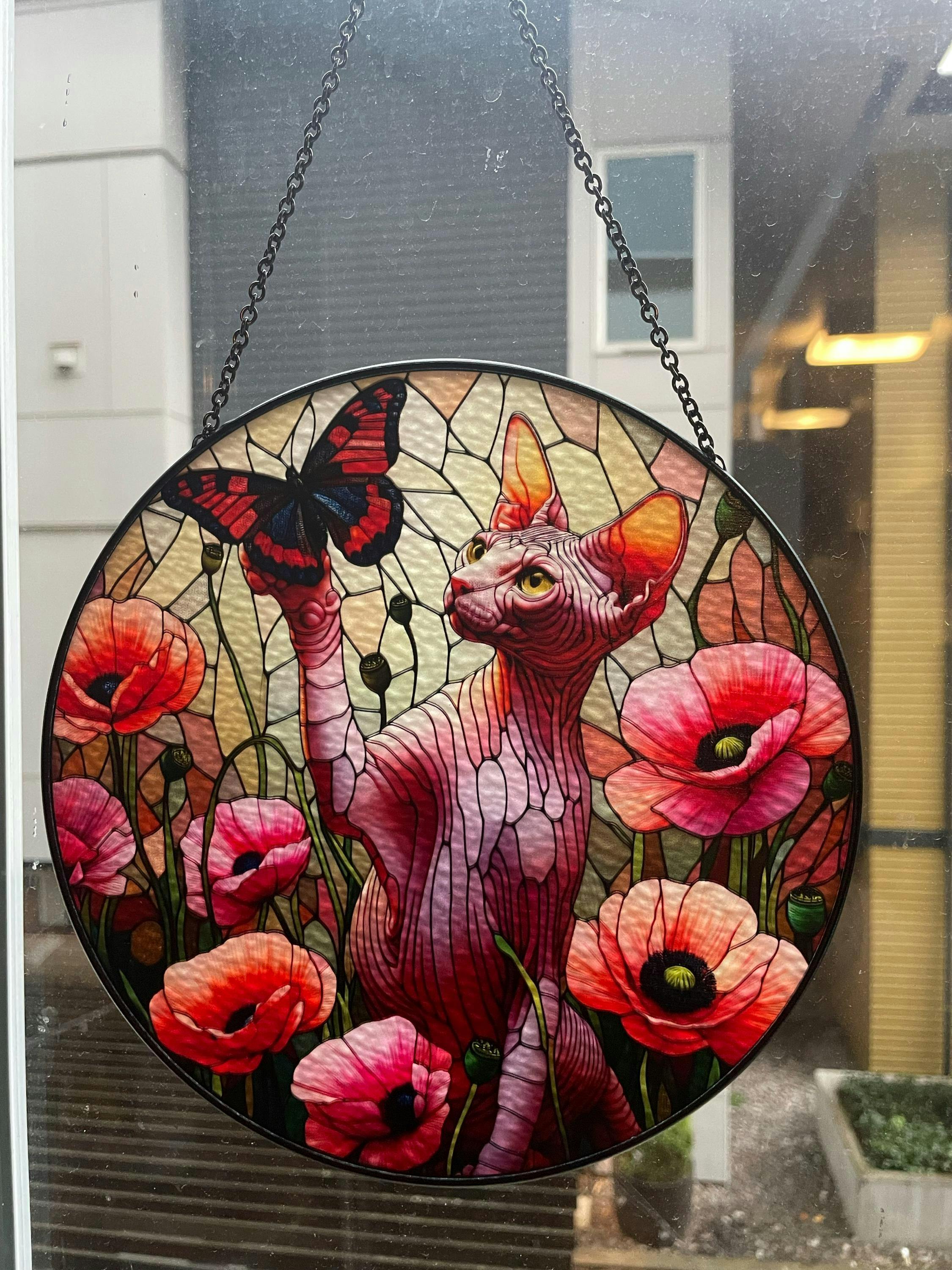 Sphynx Cat Among poppy Flower GLASS, Moms Gift, Cat Mom, Sphynx Lover Gift, Sphynx Mom Decor, Mother's Day 2025