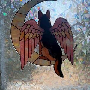 Acrylic Hologram German Shepherd, Angel Wings, Crescent Moon, Dog Memorial, Dog Mom Gift, Pet Tribute, Iridescent Decor