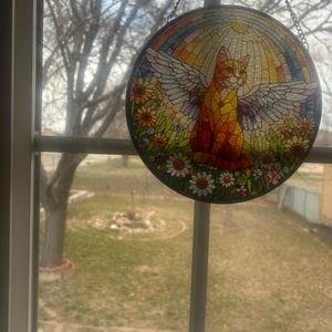 Angel Orange Cat GLASS Decor, Winged Cat Suncatcher, Rainbow Moon Decor, Pet Memorial Gift, Family Room Decoration, Cat Lover Gift Hanging