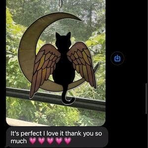 Black Cat Angel Holographic Acrylic Window Hanging, Cat Memorial Gift, Pet Loss Keepsake, Moon and Wings Decor, Cat Mom Gift,Cat Lover Decor