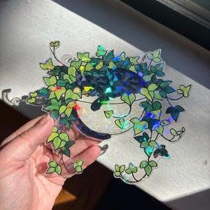 Black Cat Sleeping on Ivy Hologram Ornament, Cat ACRYLIC Window Hanging, Plant Lover Gift, Ivy Plants Decor, Cozy Cat Decor, Gift For Mom