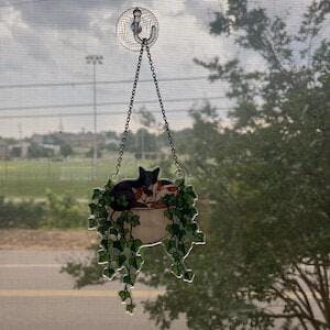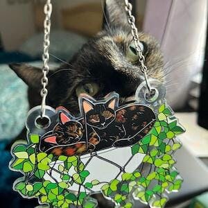 Black Cat with Calico cat Sleeping on Ivy Hologram Ornament, Cat ACRYLIC Window Hanging, Plant Lover Gift, Ivy Plants Decor, Cozy Cat Decor