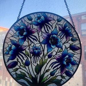 Colorado Blue Columbine Glass SunCatcher Colorado state flower Art Window Hanging State Pride Kitchen Home Decor, MOTHER'S DAY gift 2025