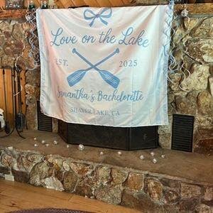 Custom Lake Bachelorette Banner | Nautical Bridal Shower Tapestry | Love on the Lake Party Decor | Personalized Boat Flag for Bride