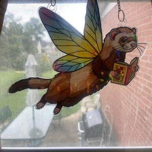 Fairy Ferret Reading Hologram Acrylic Window Decor, Cute Ferret Bookish Gift, Reading Lover Decor, Ferret Lover Gift, Gift For Book Lover