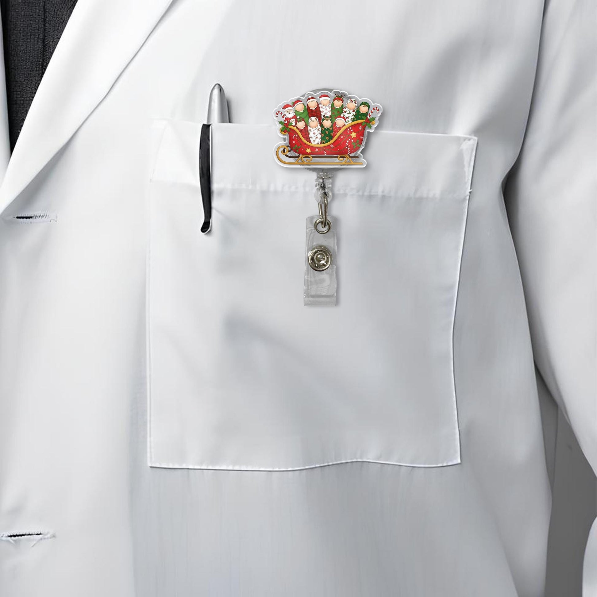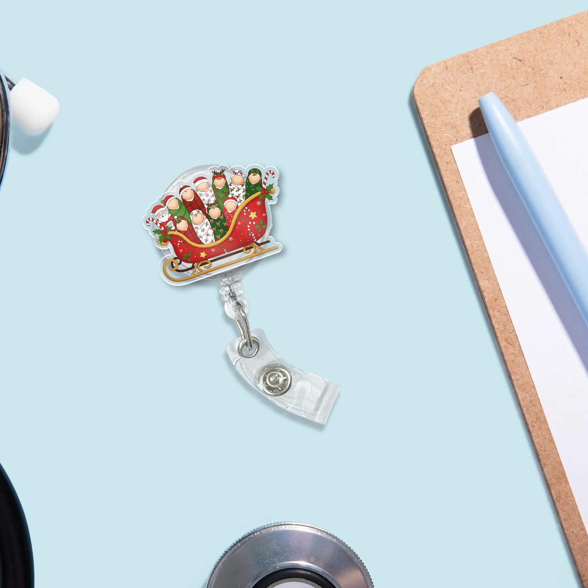 Labor and Delivery Badge Reel Christmas Sleigh Nurse ID Holder