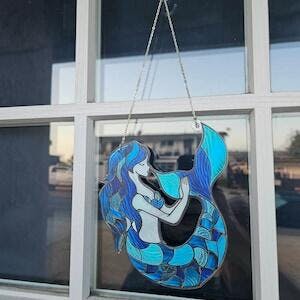 Mermaid Acrylic Window Hanging, Wall Art, Mermaid Hanging, Indoor Decor, Mermaid lovers gift, FAUX Stained glass, NOT Suncatcher