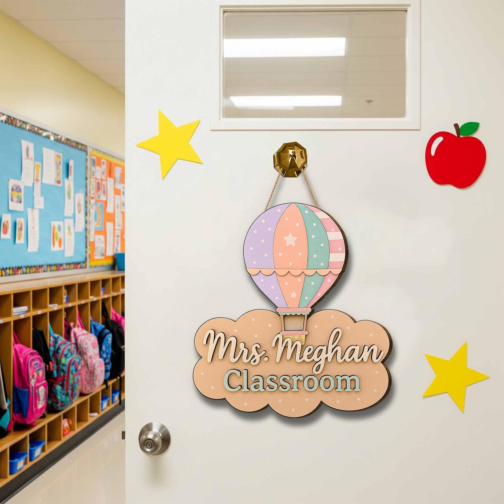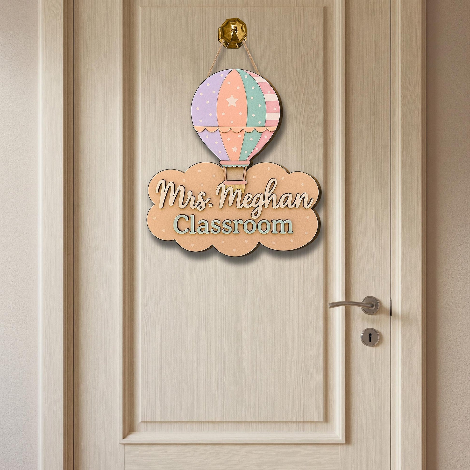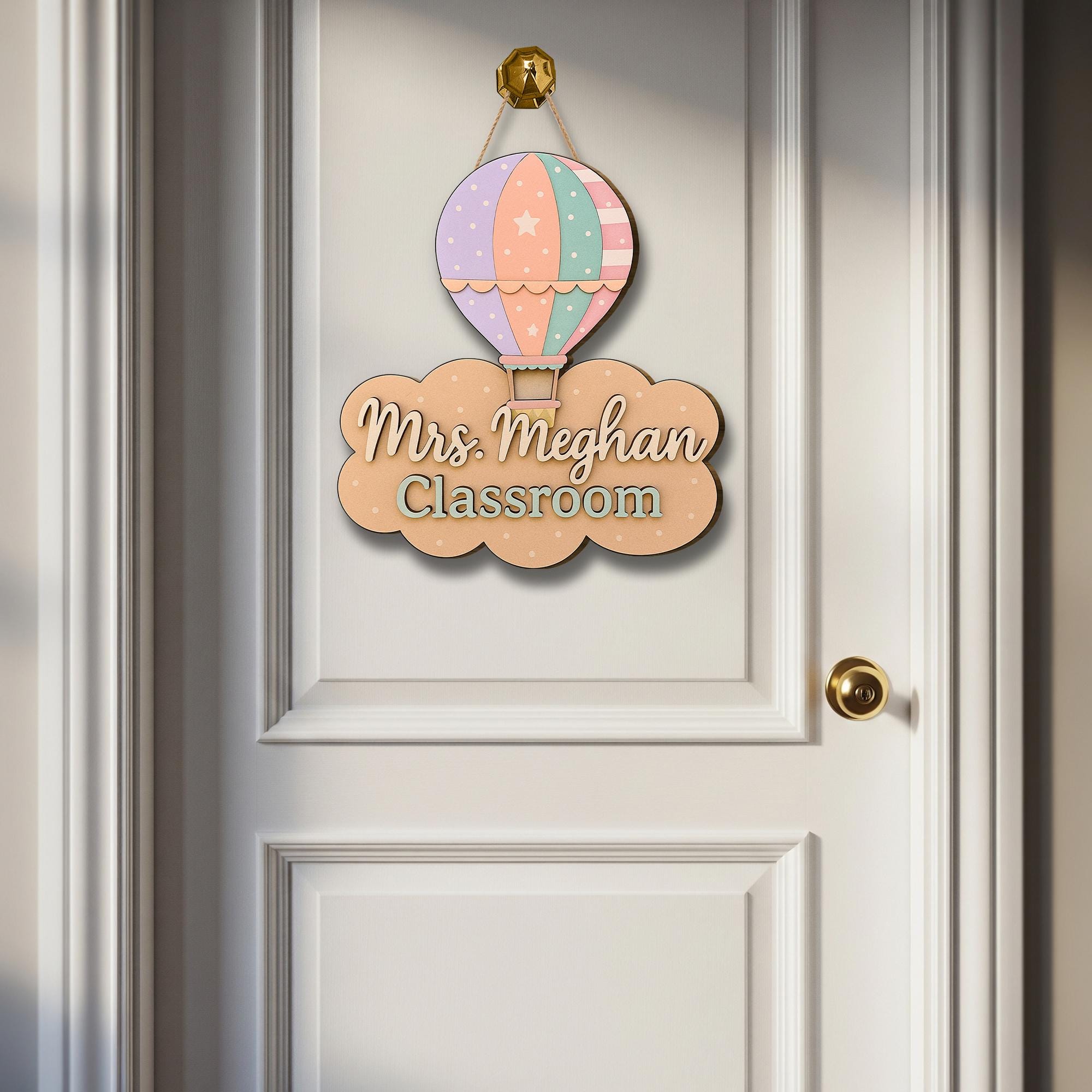 Pastel Hot Air Balloon Classroom Door Sign – Personalized Teacher Name Sign, Cute Back to School Decor for Teachers, Back to School Gift