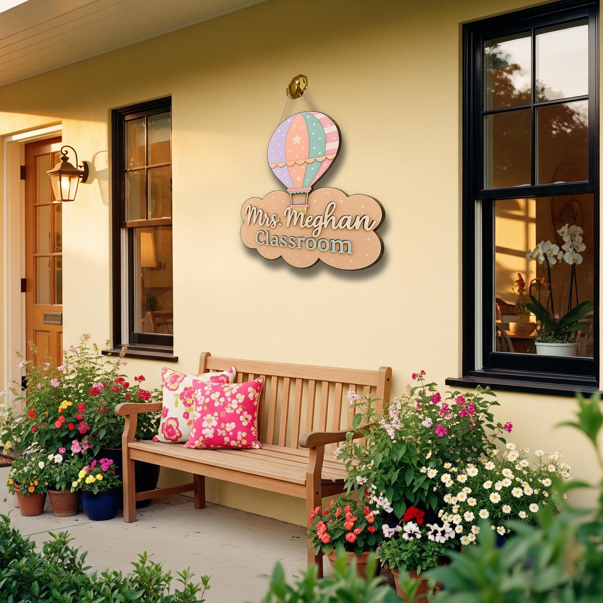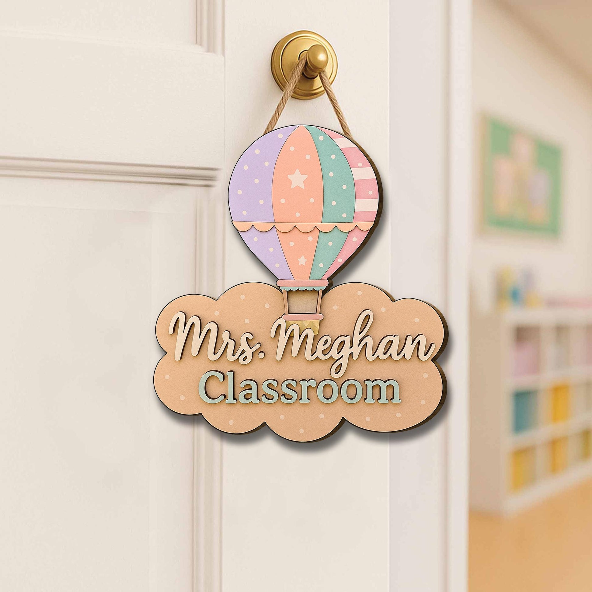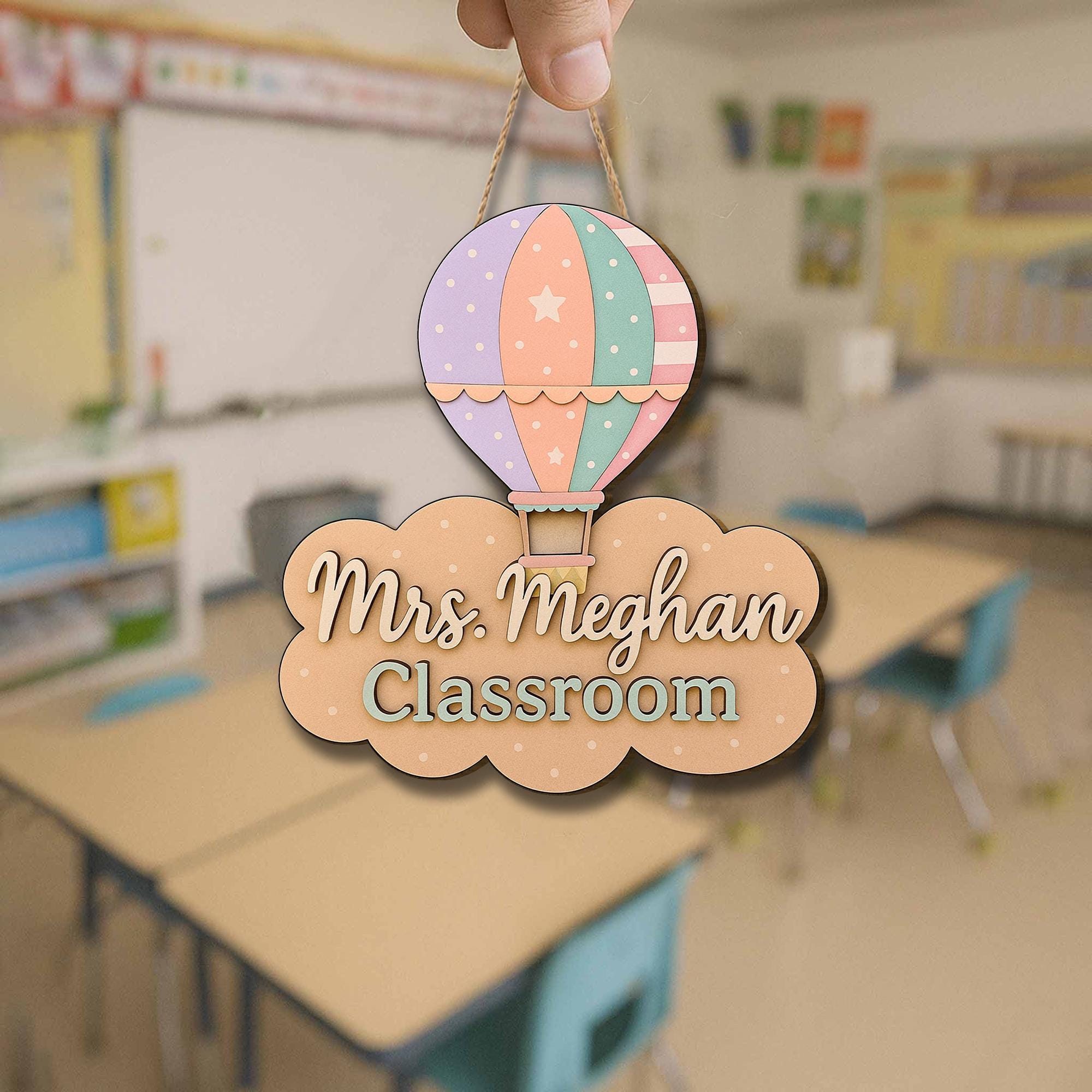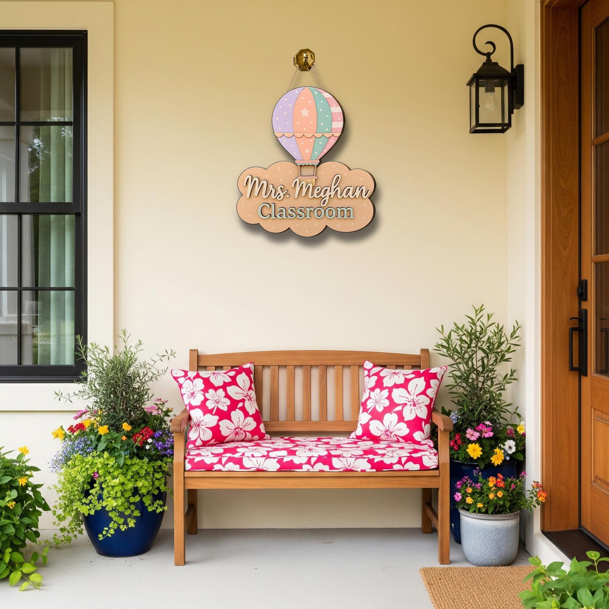 Pastel Hot Air Balloon Classroom Door Sign – Personalized Teacher Name Sign, Cute Back to School Decor for Teachers, Back to School Gift