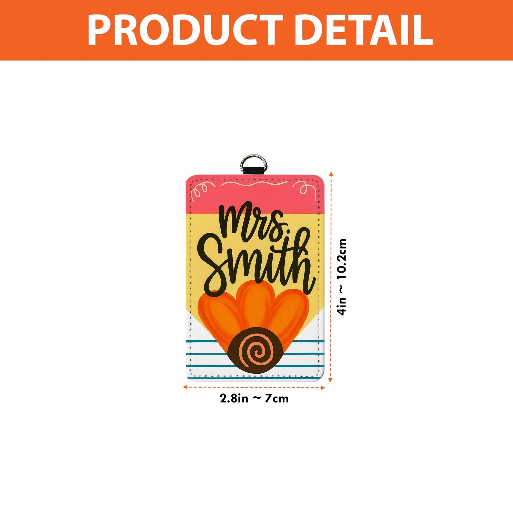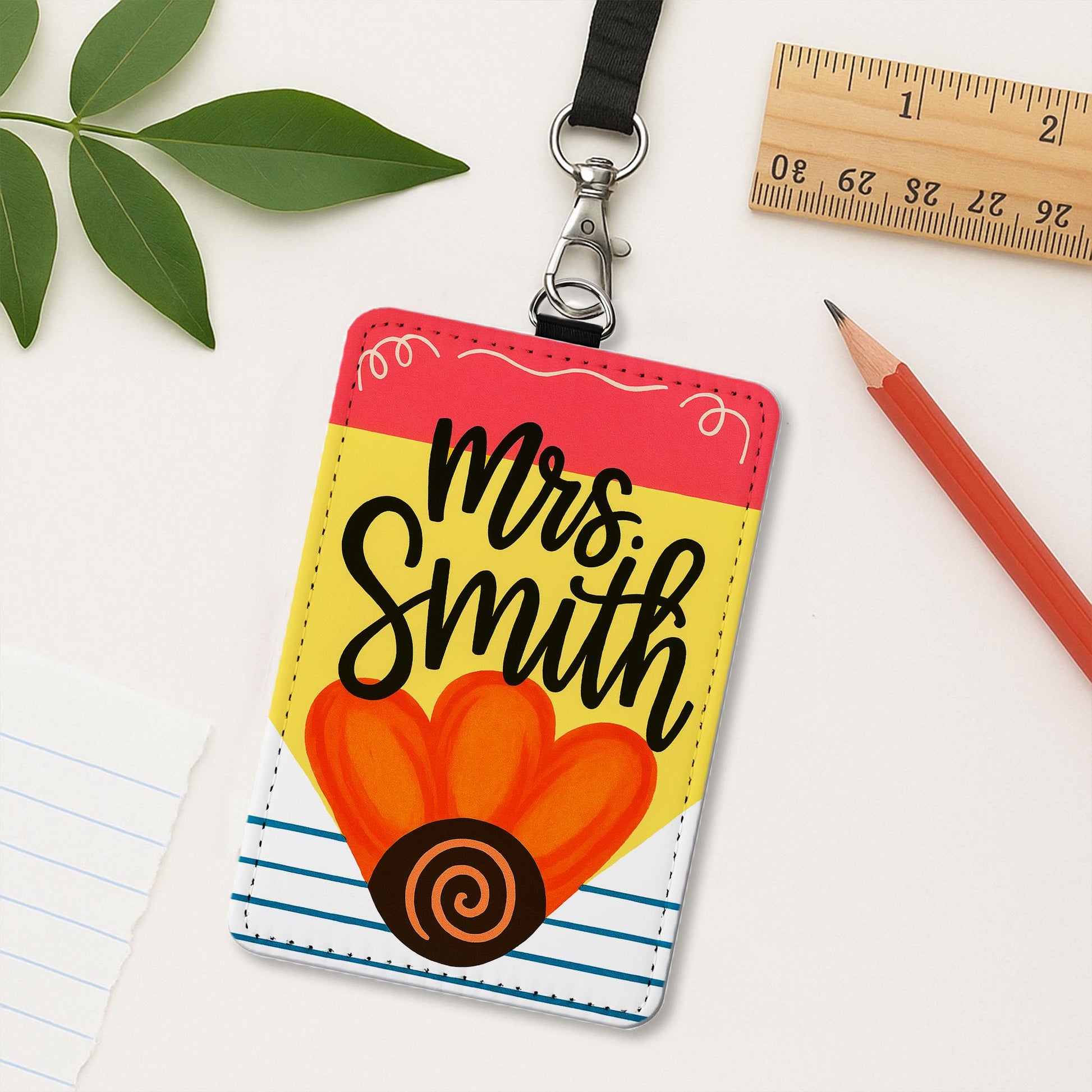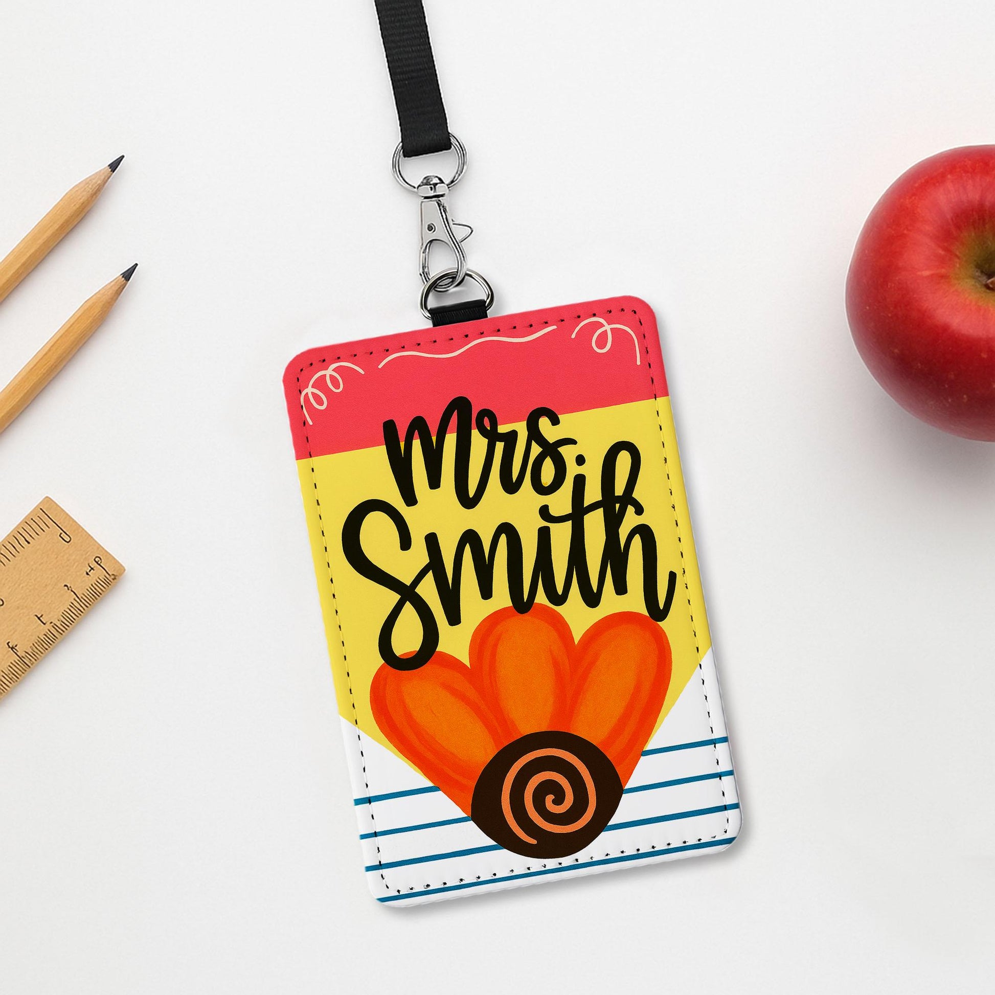 Personalized Teacher Pencil ID Badge Holder | Cute Back to School Name Tag for Teachers, Educators | Classroom Lanyard Accessory ID Badge