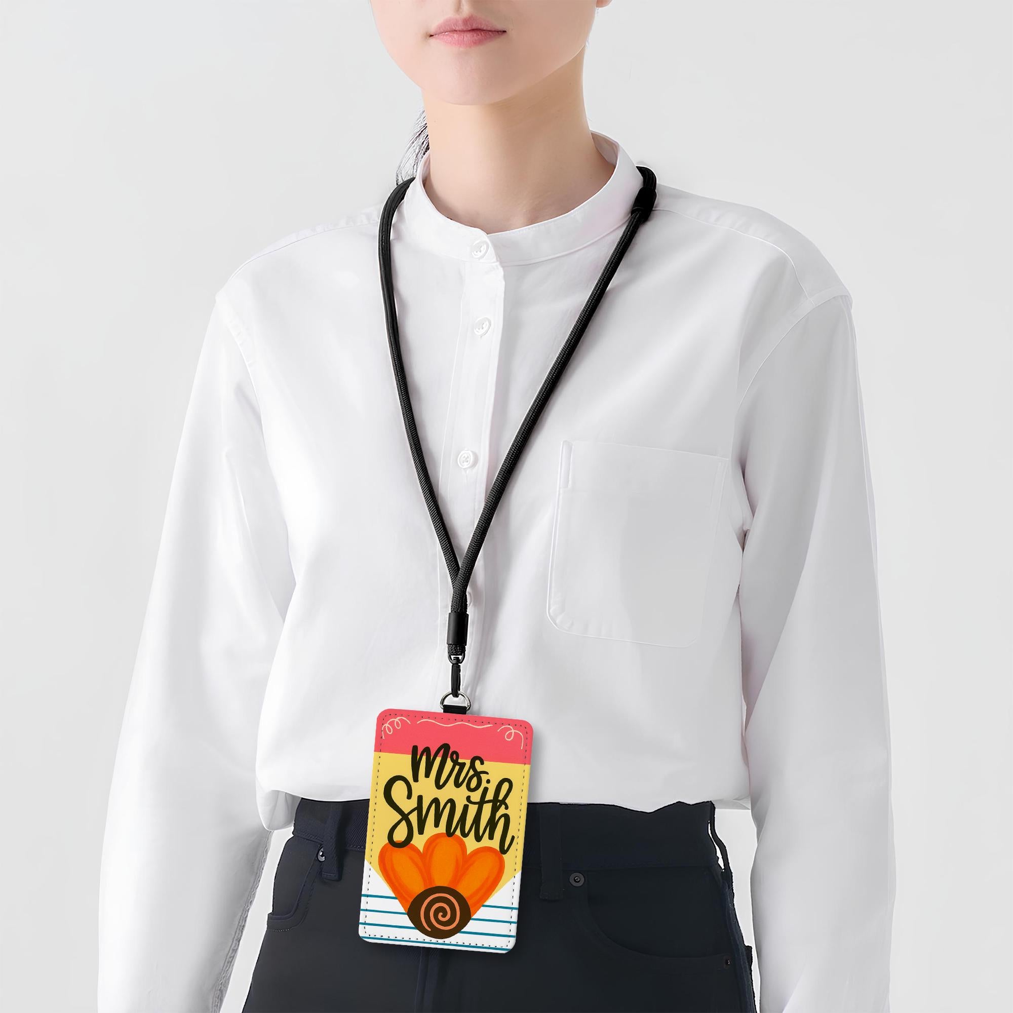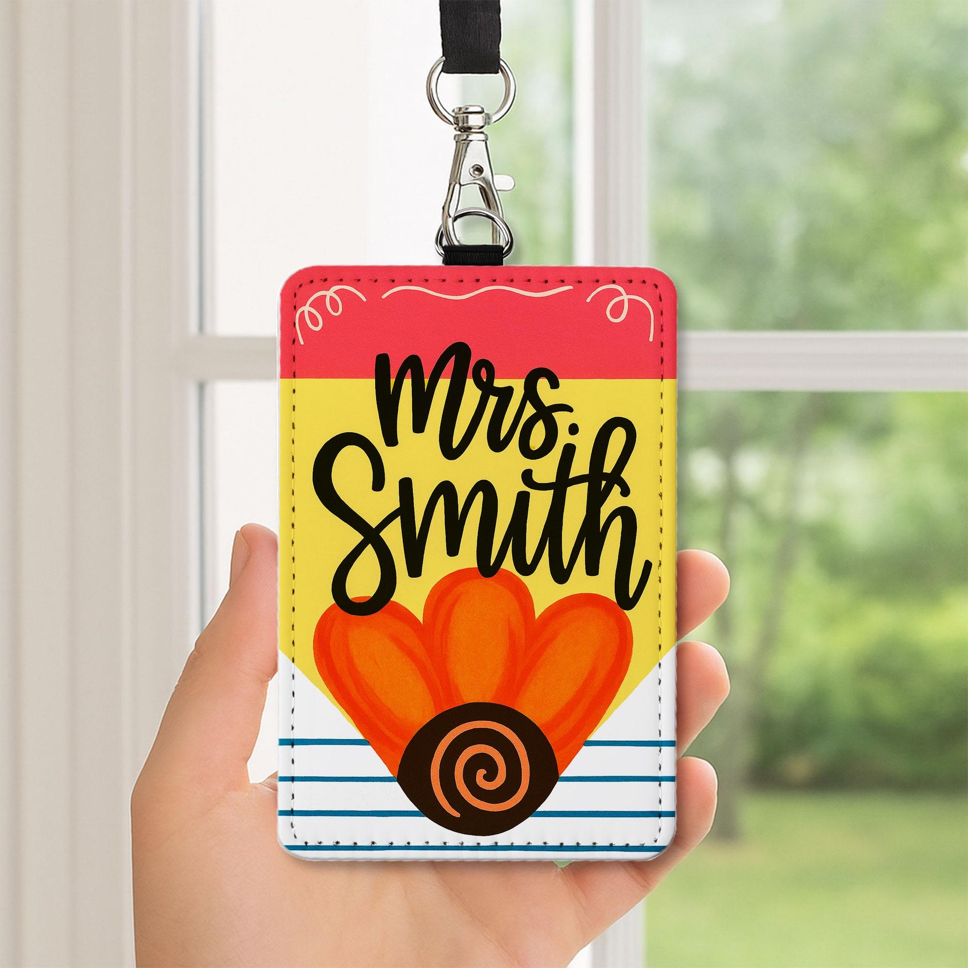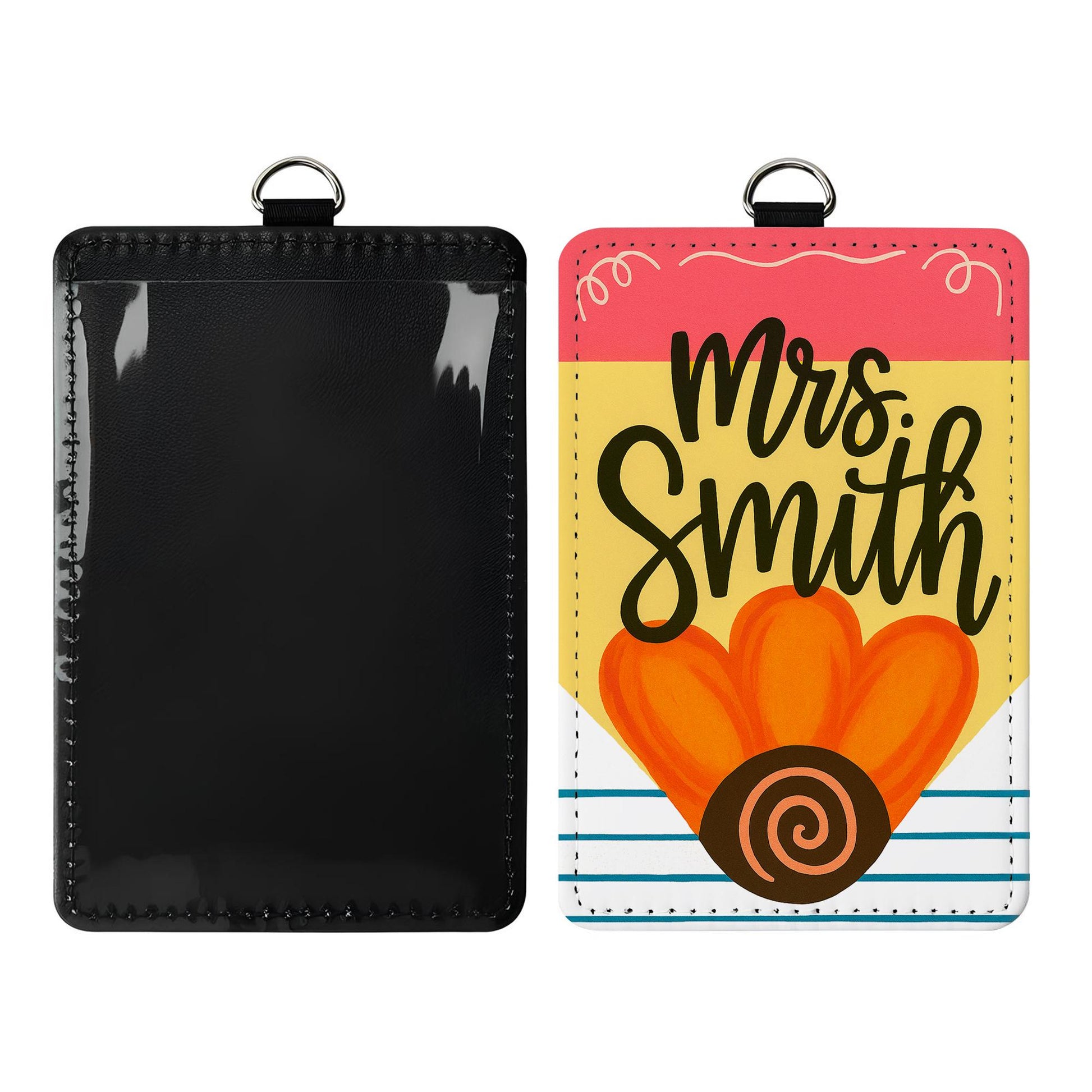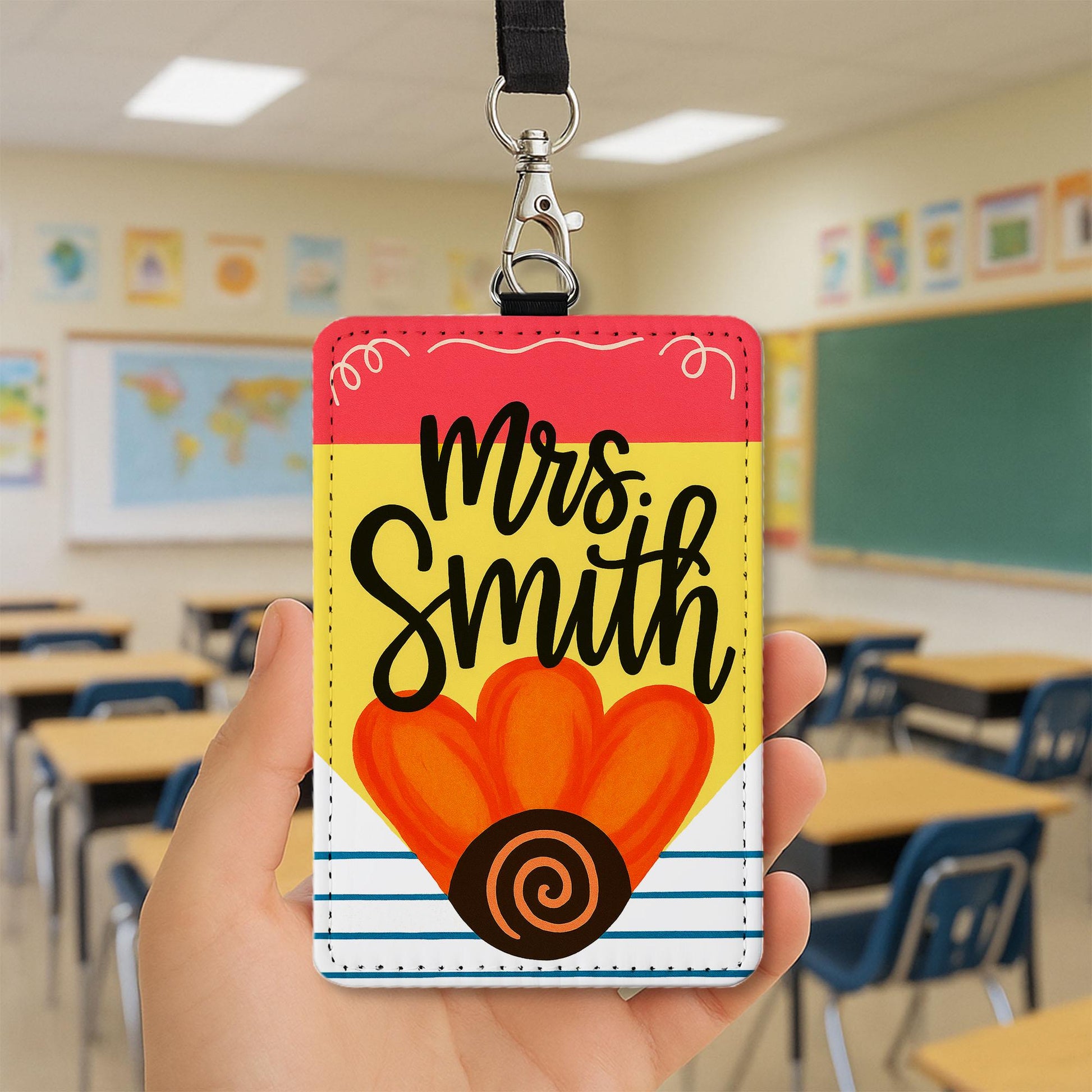 Personalized Teacher Pencil ID Badge Holder | Cute Back to School Name Tag for Teachers, Educators | Classroom Lanyard Accessory ID Badge