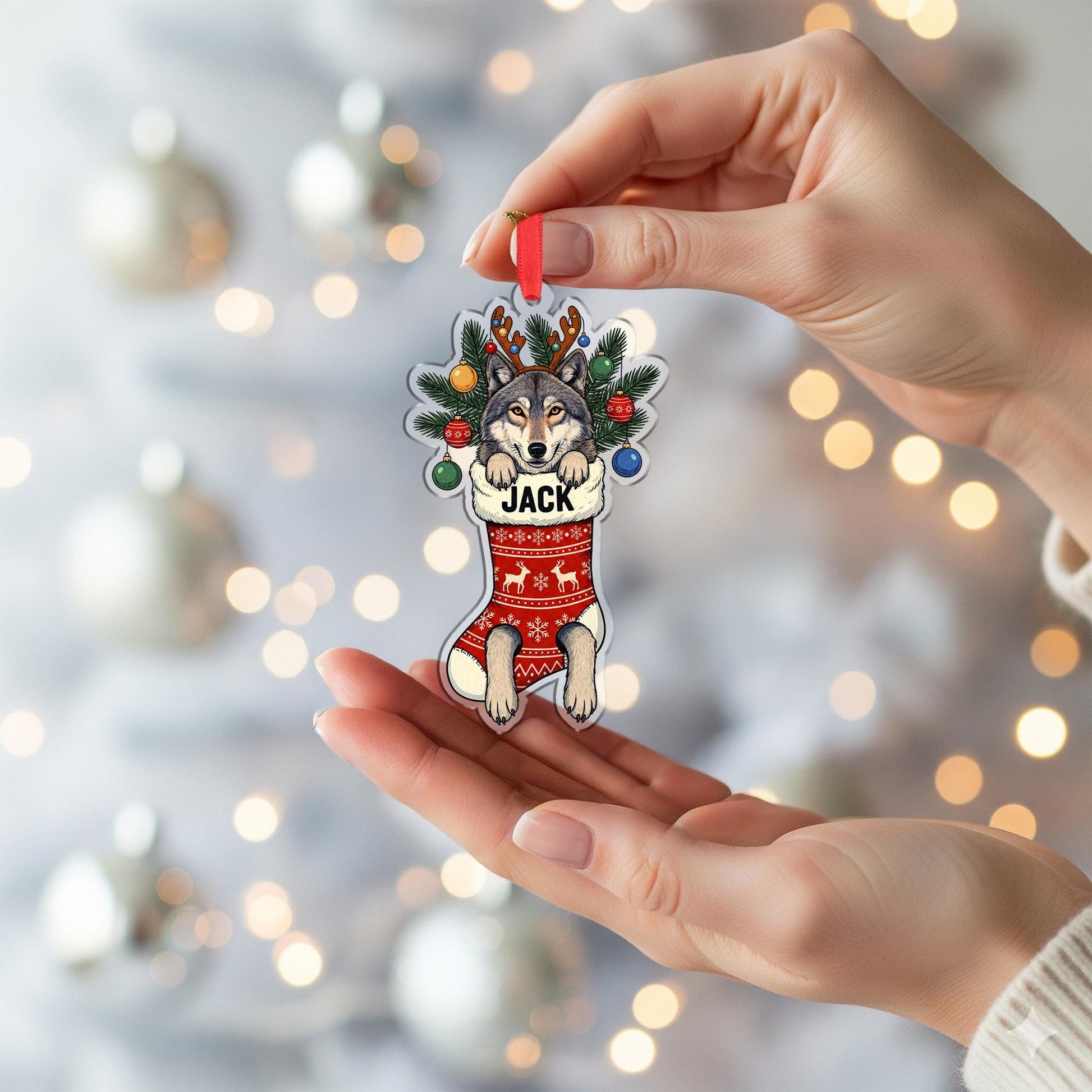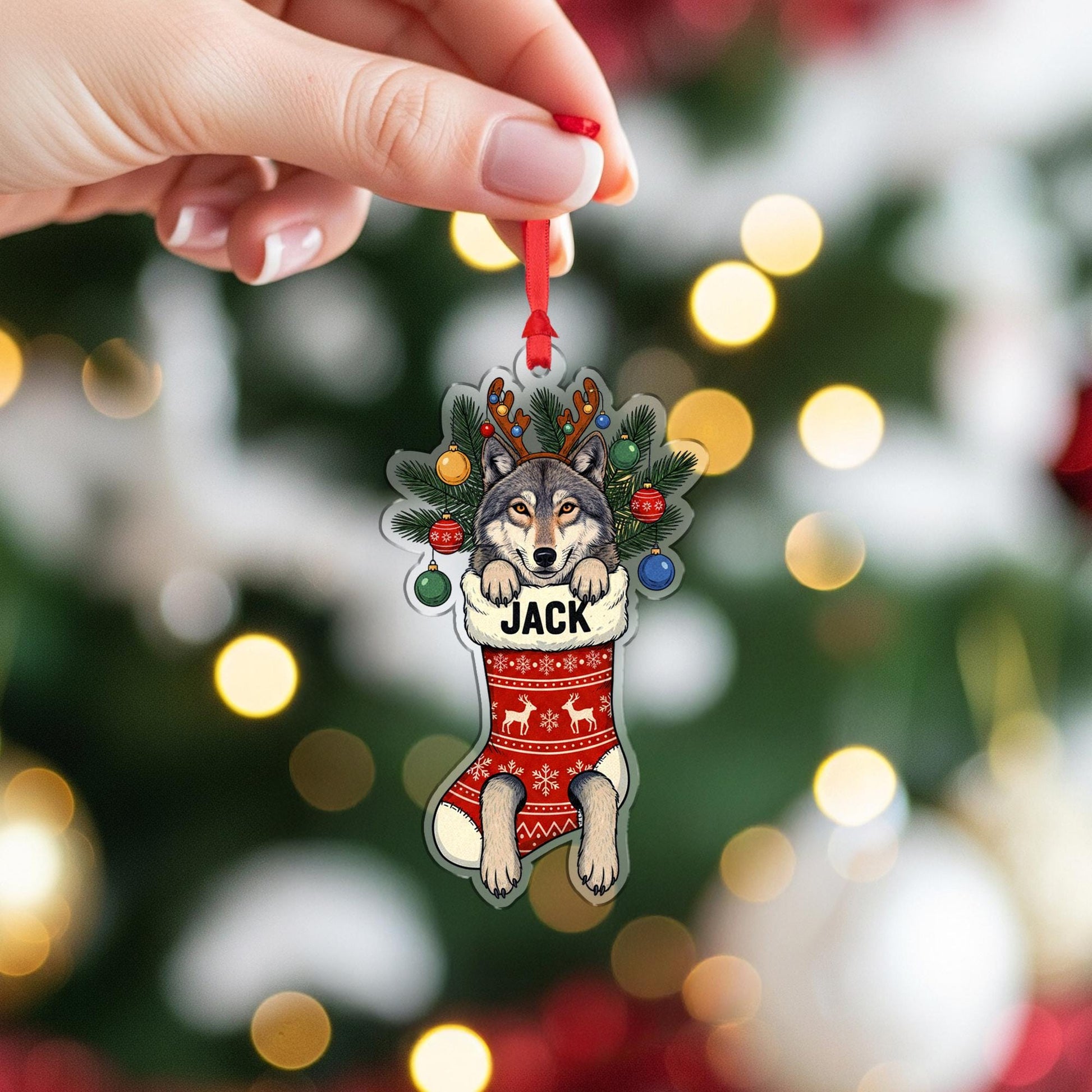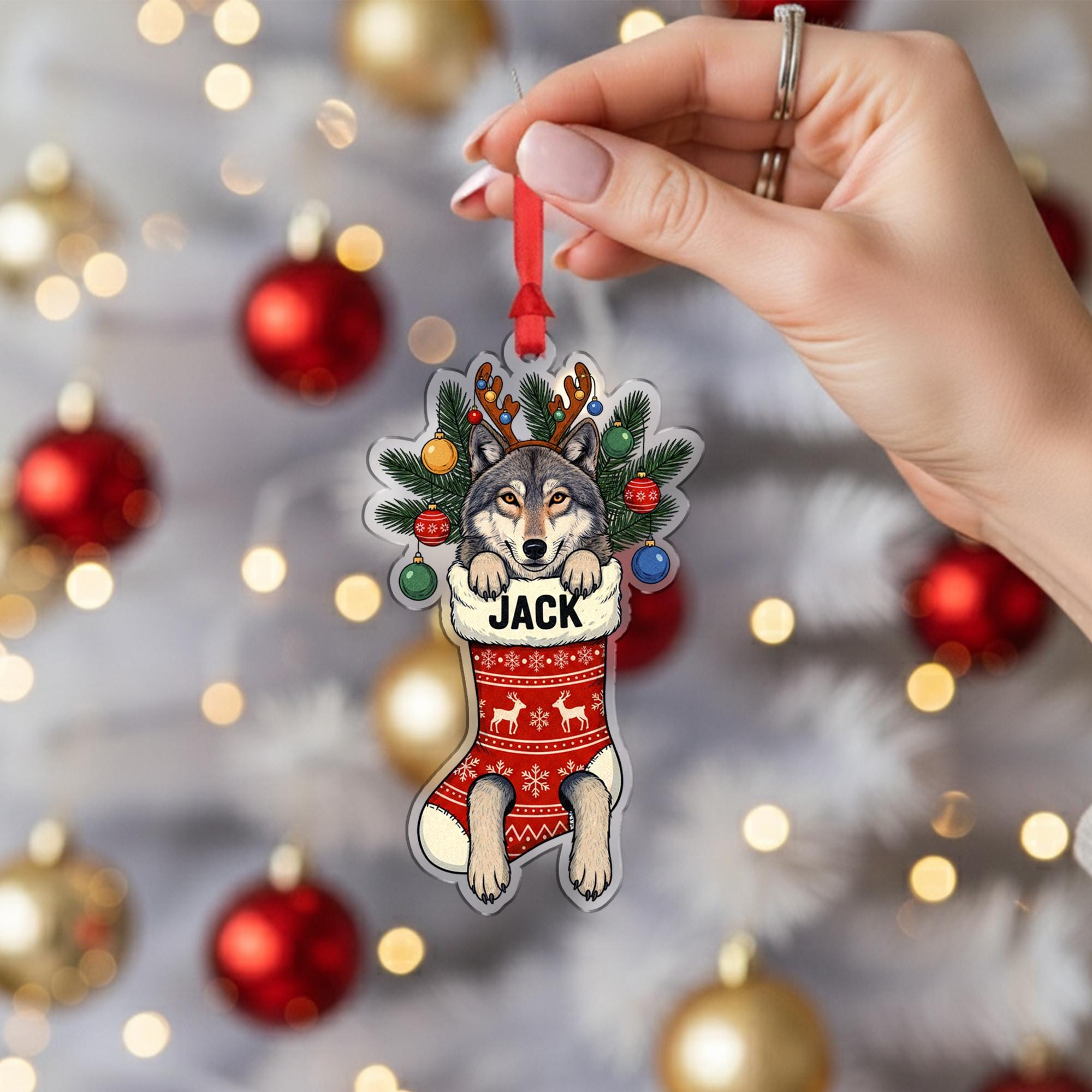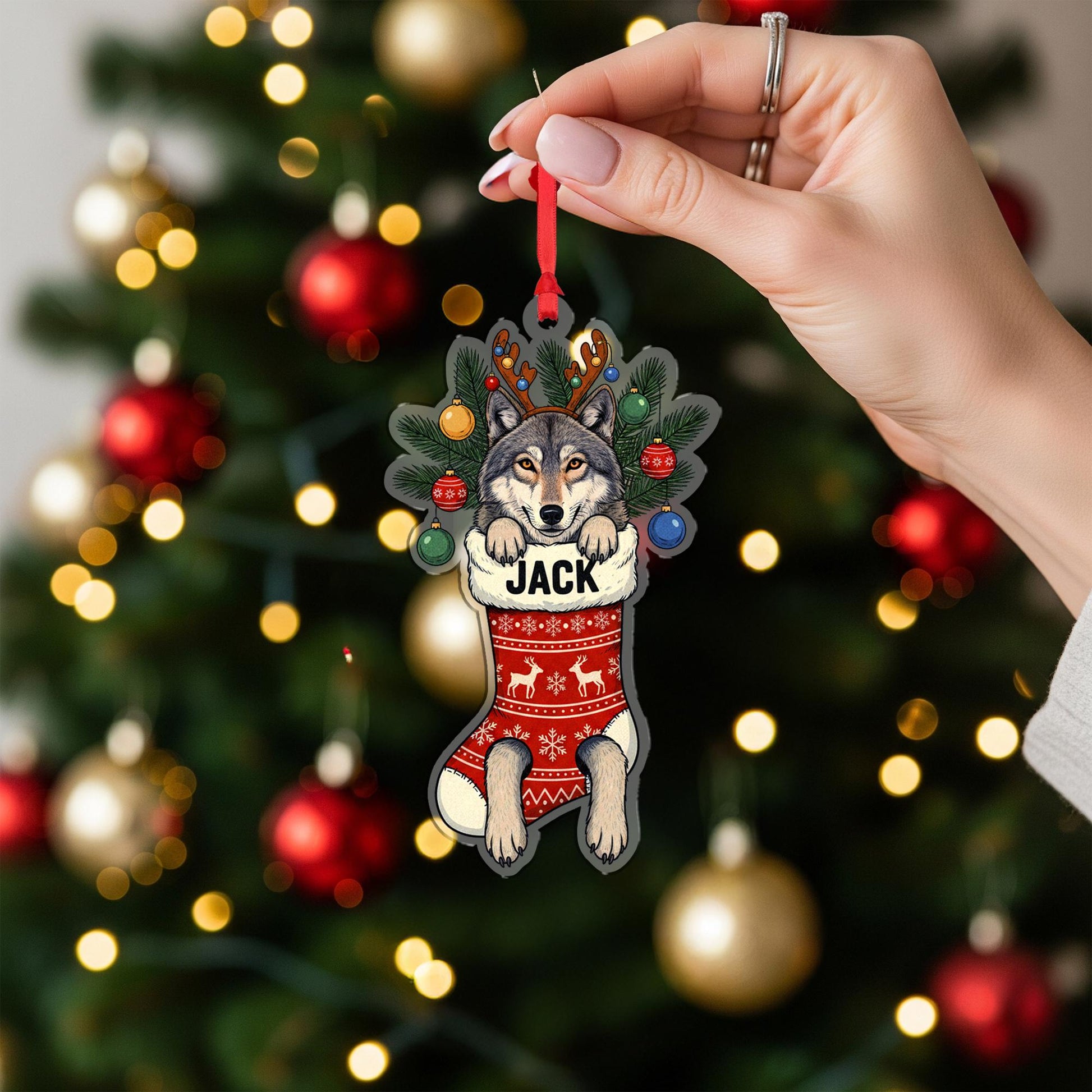Personalized Wolf Christmas Ornament: Custom Animal Stocking Decoration